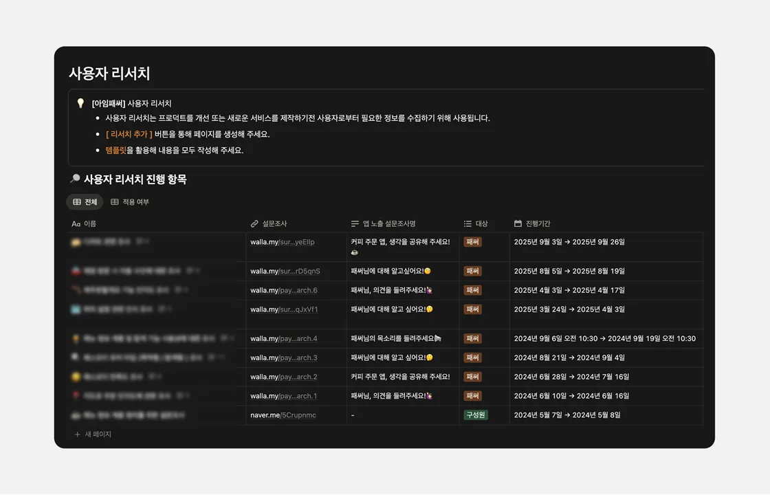 사소해 보이지만 굉장히 의미 있는 변화였습니다. 멀게 느껴지던 사용자와 한층 가까워질 수 있었고, 필요하다면 언제든지 설문을 진행해 실제 사용자의 목소리를 수집할 수 있게 되었죠. 디자이너라면 누구나 가지고 있는 “실제 사용자 의견을 바탕으로 의사 결정을 하고 싶다”는 작은 바람에서 비롯된 결과물이었고, 실제 팀 차원에서도 큰 자산이 되었다고 생각해요. 👍🏻