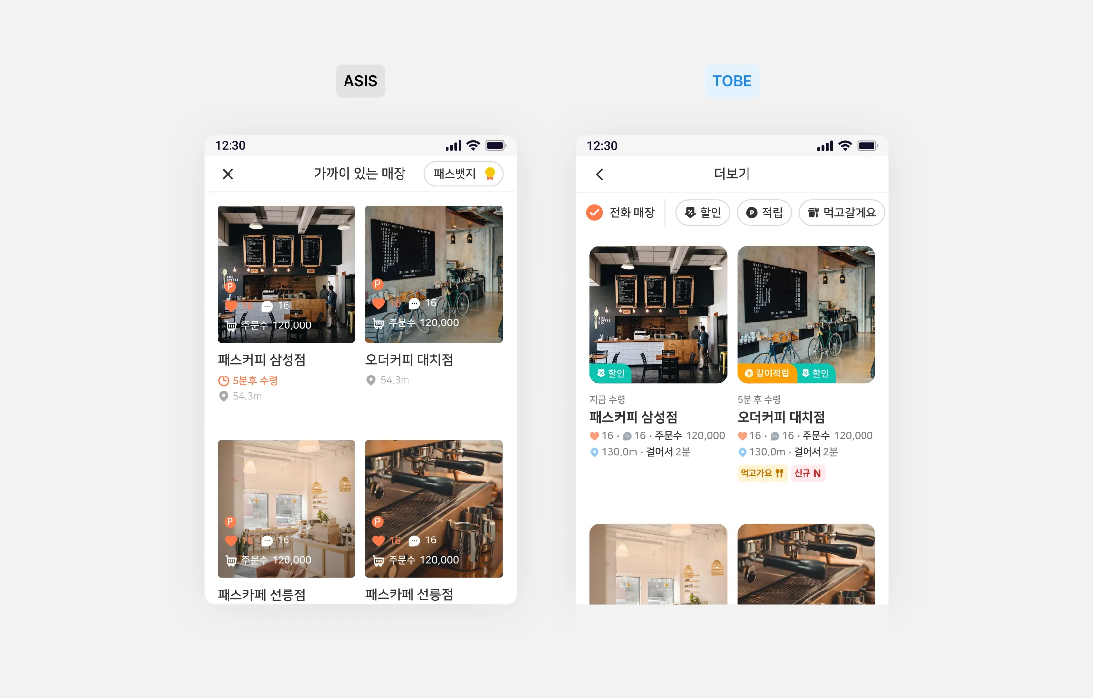 패써 분들은 탐색보다는 최대한 빠르고 간편하게 주문하는 것을 원하시고, 반대로 점주님들은 매장이 더 많이 노출되고 활발하게 홍보되기를 바라시죠. 이 두 가지 다른 니즈 사이에서 최적의 균형점을 찾아가는 것이 지금까지 패스오더 디자인이 굳건히 지켜온 원칙이자, 앞으로도 끊임없이 이어가야 할 중요한 목표라고 생각합니다.