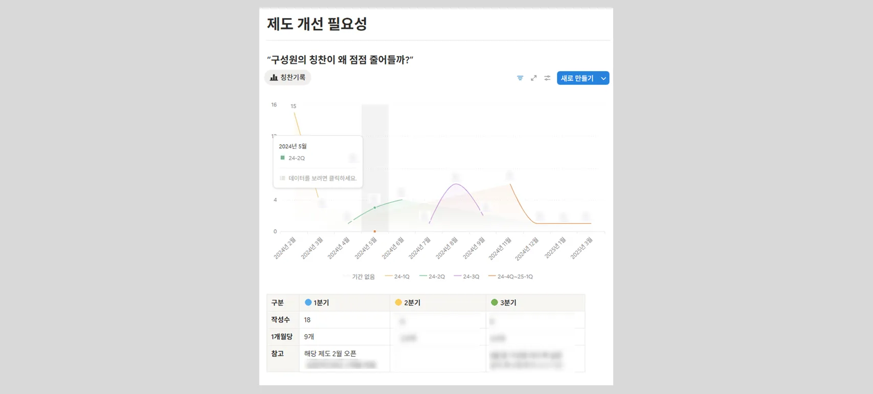 문제는 오히려 아직 한 번도 칭찬을 작성해 본 적 없는 구성원들의 참여 의사는 현저히 낮았다는 것이었죠. 저는 이 간극의 이유에 집중해 깊이 들여다보았습니다.
