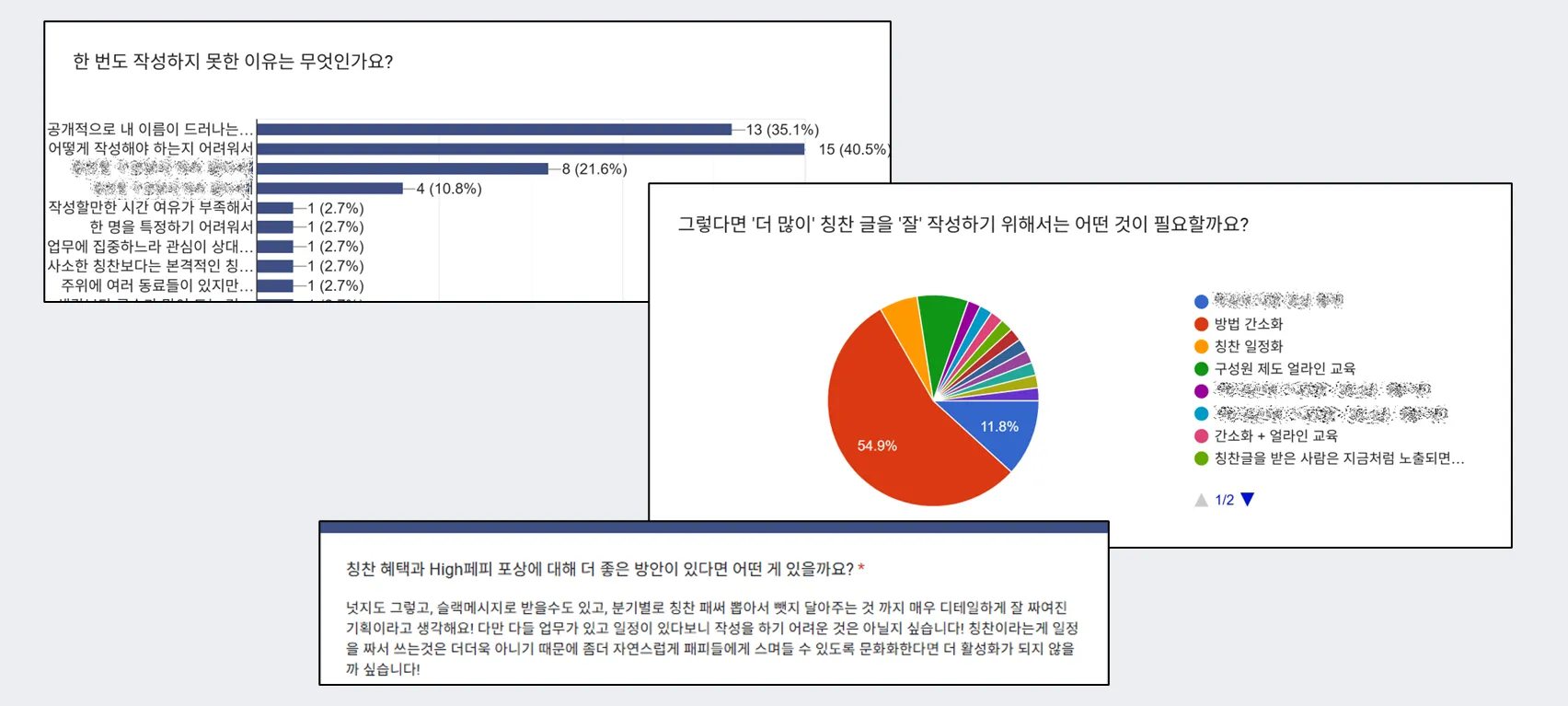 이 문제 또한 우리가 어떻게 해결하느냐에 따라 정착될 문화였기 때문에, 근본적으로 더 깊이 들여다보기 위한 구성원 피드백 설문을 진행했습니다.