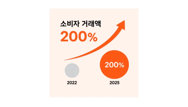 지난 3년간의 성과를 살펴보면, 소비자 거래액이 무려 200%나 폭증했다는 놀라운 사실을 발견할 수 있죠. 이는 거래액 규모가 매년 배로 껑충 뛰었다는 것을 의미합니다.