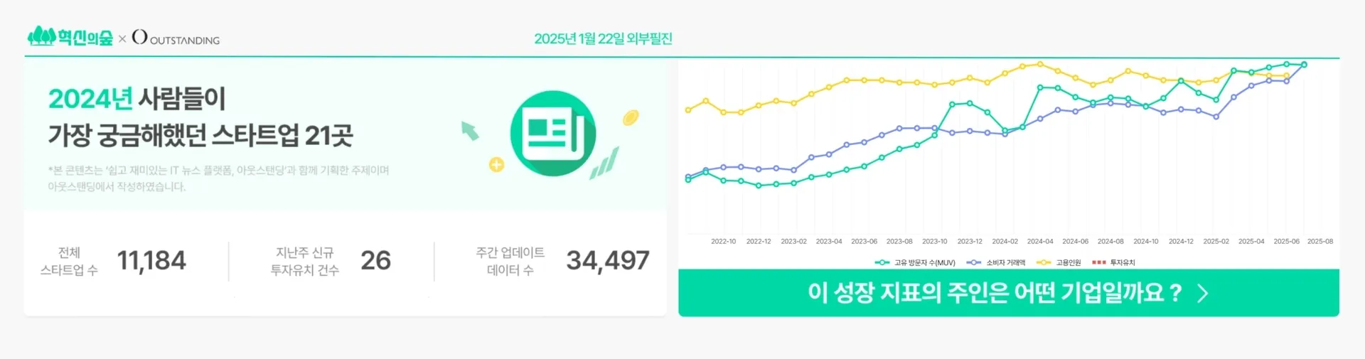 2024년 사람들이 가장 많이 조회했던 스타트업 21곳을 소개하는 아티클에서 페이타랩이 소개되었습니다. 그것도 꾸준히 우상향을 그리며 성장하는 기업의 대표 이미지로 사용될 정도로요.