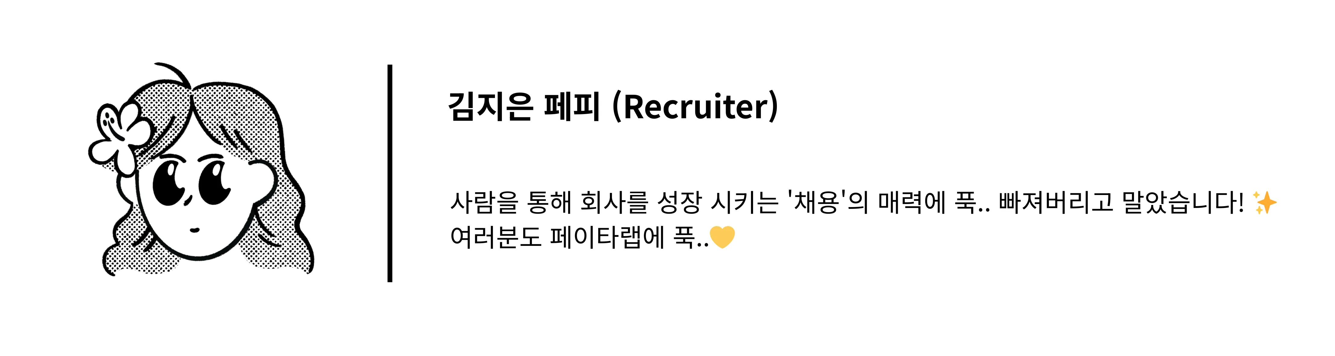 그렇다면 채용을 꾸준히 진행하고 있는 회사는 어떤 상황이라고 추측 할 수 있을까요? 바로 안정적으로 잘 성장하고 있다는 겁니다. 특히 주목할 점은 대기업조차 채용을 축소하고 있는 와중에 페이타랩은 무려 24개의 포지션이 열려있다는 거예요. 안정적인 성장을 이뤄내며 언제든지 더 많은 인재를 모실 준비가 되어 있다고 볼 수 있는 거죠.