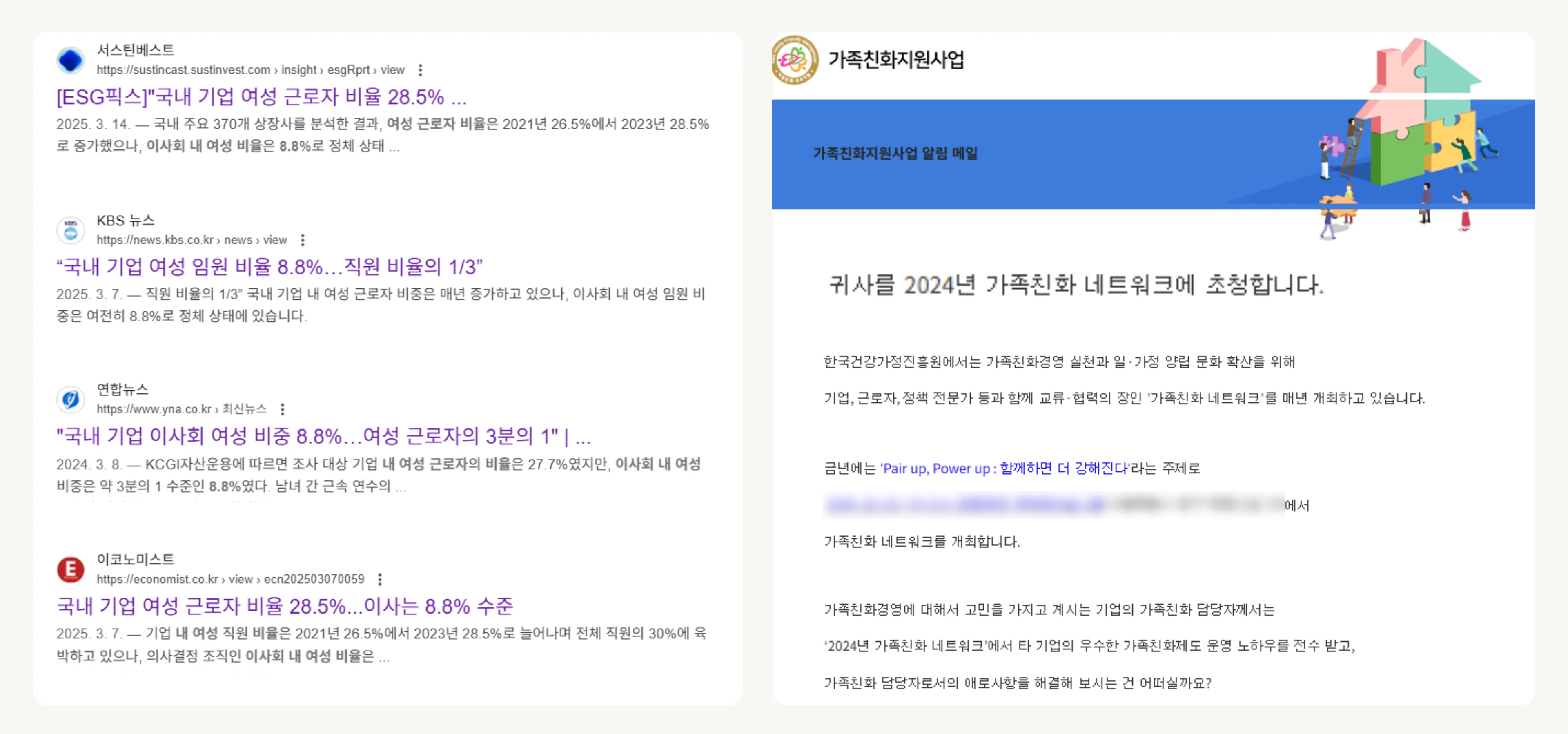 이런 문화 덕분인지 지난해, 여성가족부 주관 ‘가족친화 네트워크’에도 초청받았다고 들었어요. 경력 단절 없이 일할 수 있는 환경이 잘 갖춰진 기업들만 초청되는 자리라고 하더라고요! 👏